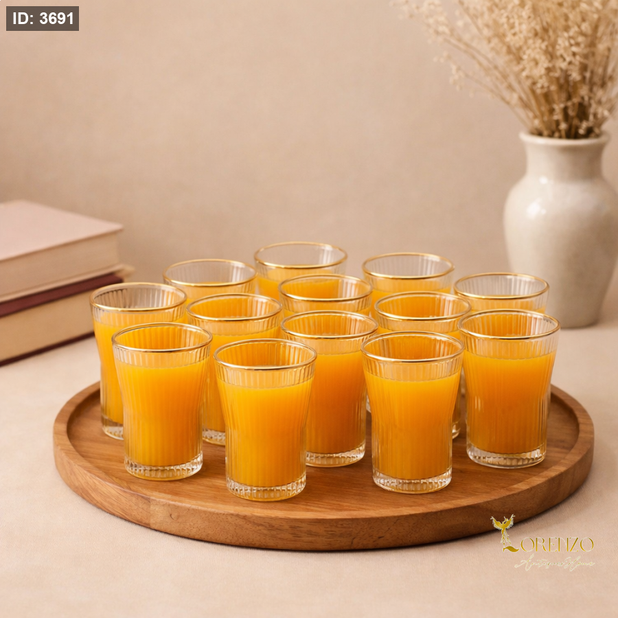 طقم كاسات زجاجية مخططة بحافة ذهبية – 12 قطعة