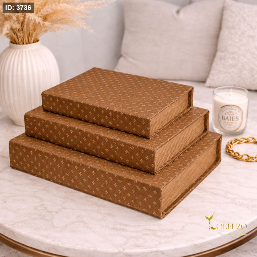 أضيفي لمسة دفء وفخامة لديكور منزلك مع طقم كتب الديكور بتصميم جلدي أنيق باللون البني. تصميم كلاسيكي راقٍ بنقشة مميزة وحواف ذهبية يعطي إحساس فاخر ويكمل أي مساحة بستايل دافئ ومرتب.