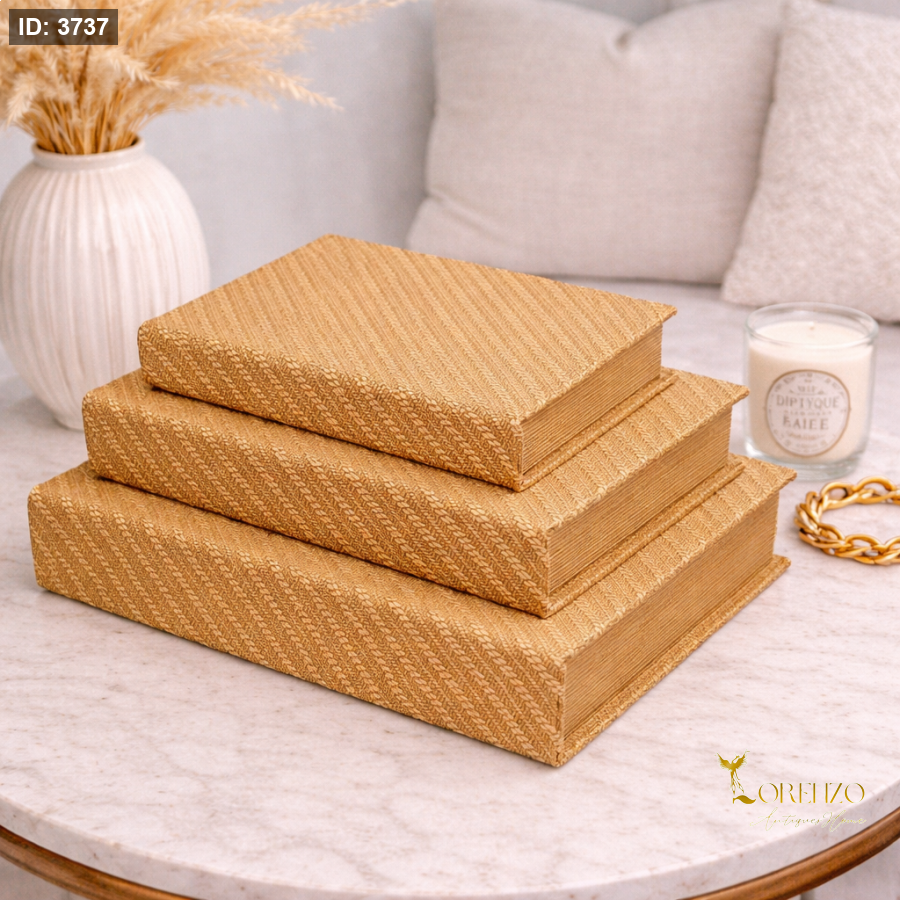 أضيفي لمسة فخامة دافئة لديكور منزلك مع طقم كتب الديكور باللون البيج بتصميم جلدي فاخر ونقشة مميزة. تصميم راقٍ يجمع بين البساطة والأناقة، مع حواف ذهبية تعطي إحساس فاخر يناسب جميع المساحات.
