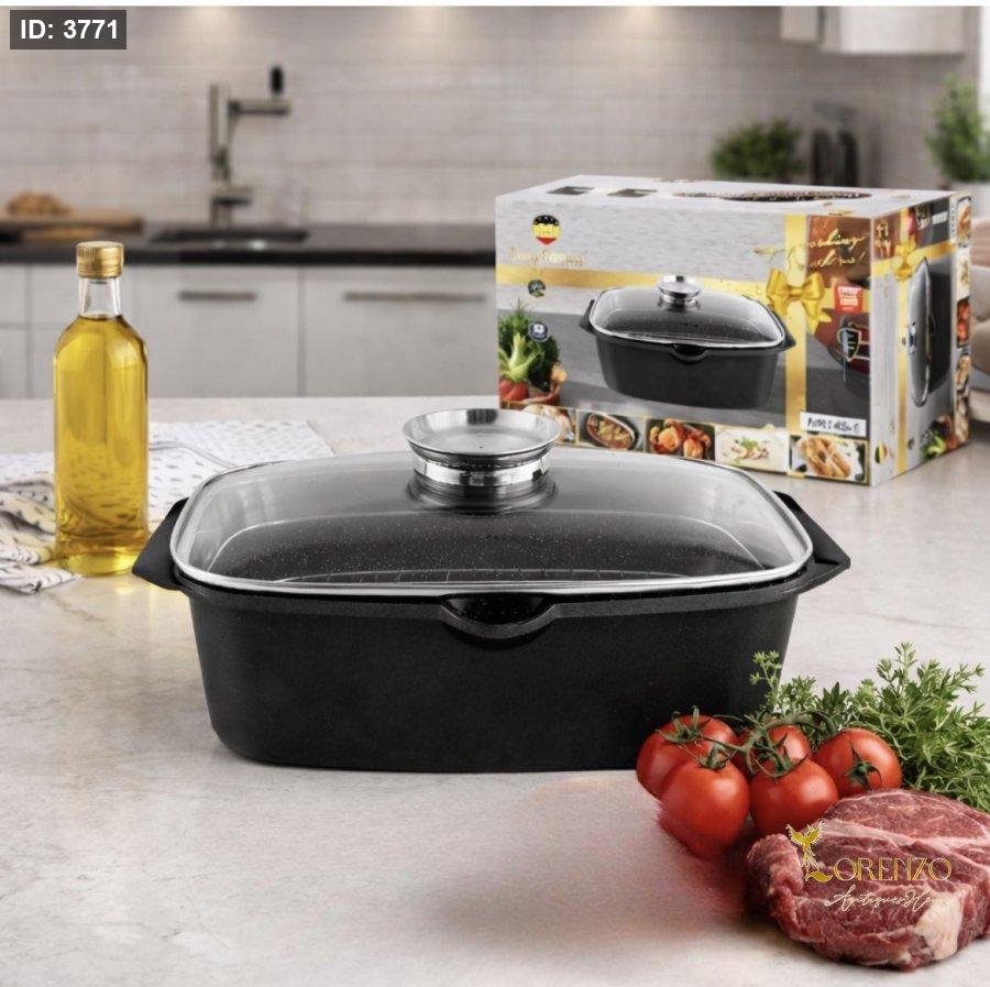 مصنوع من ألومنيوم دي كاست عالي الجودة لضمان المتانة وتوزيع الحرارة بشكل متوازن أثناء الطهي.