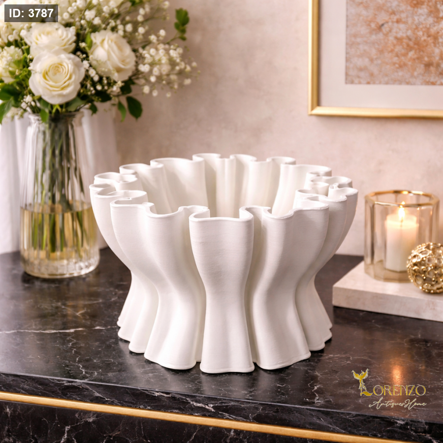 وعاء ديكور، ديكور أبيض، ديكور مودرن، اكسسوارات منزلية، ديكور طاولة، تحف فنية، ديكور فاخر