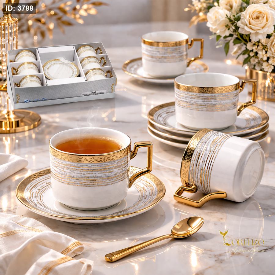 طقم فناجين شاي فاخر 6+6 – أناقة التفاصيل لكل لحظة ضيافة ☕✨