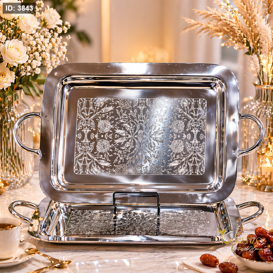 طقم صواني مستطيل فاخر (قطعتين) – نقش ورد أنيق