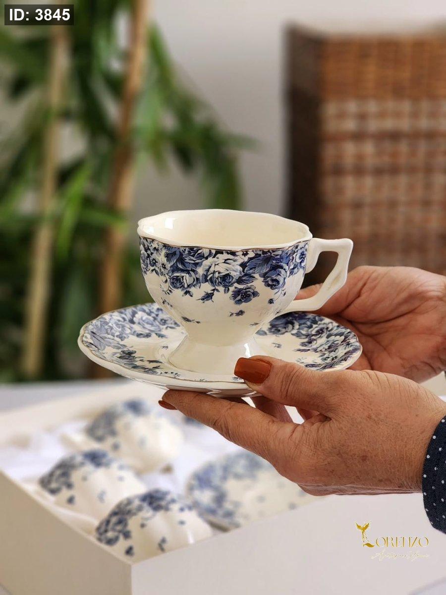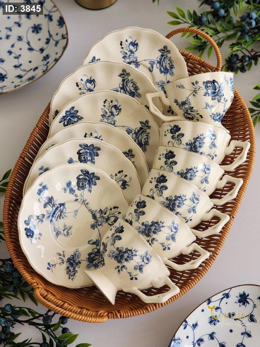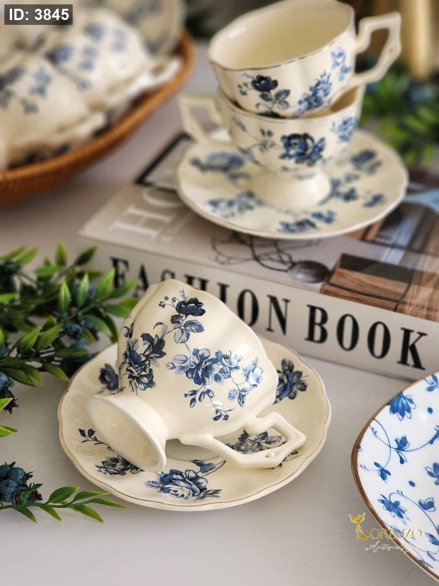 استمتعي بتجربة قهوة أنيقة مع هذا الطقم المميز من فناجين القهوة المصممة بذوق راقٍ ولمسة كلاسيكية جذابة. يأتي الطقم مكوّن من 6 فناجين متناسقة، مزينة بنقشة زهور زرقاء أنيقة تضيف لمسة فخامة لأي جلسة.