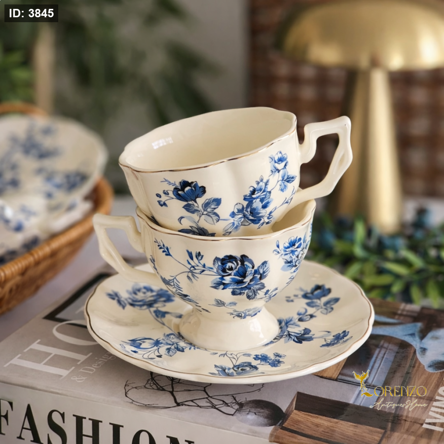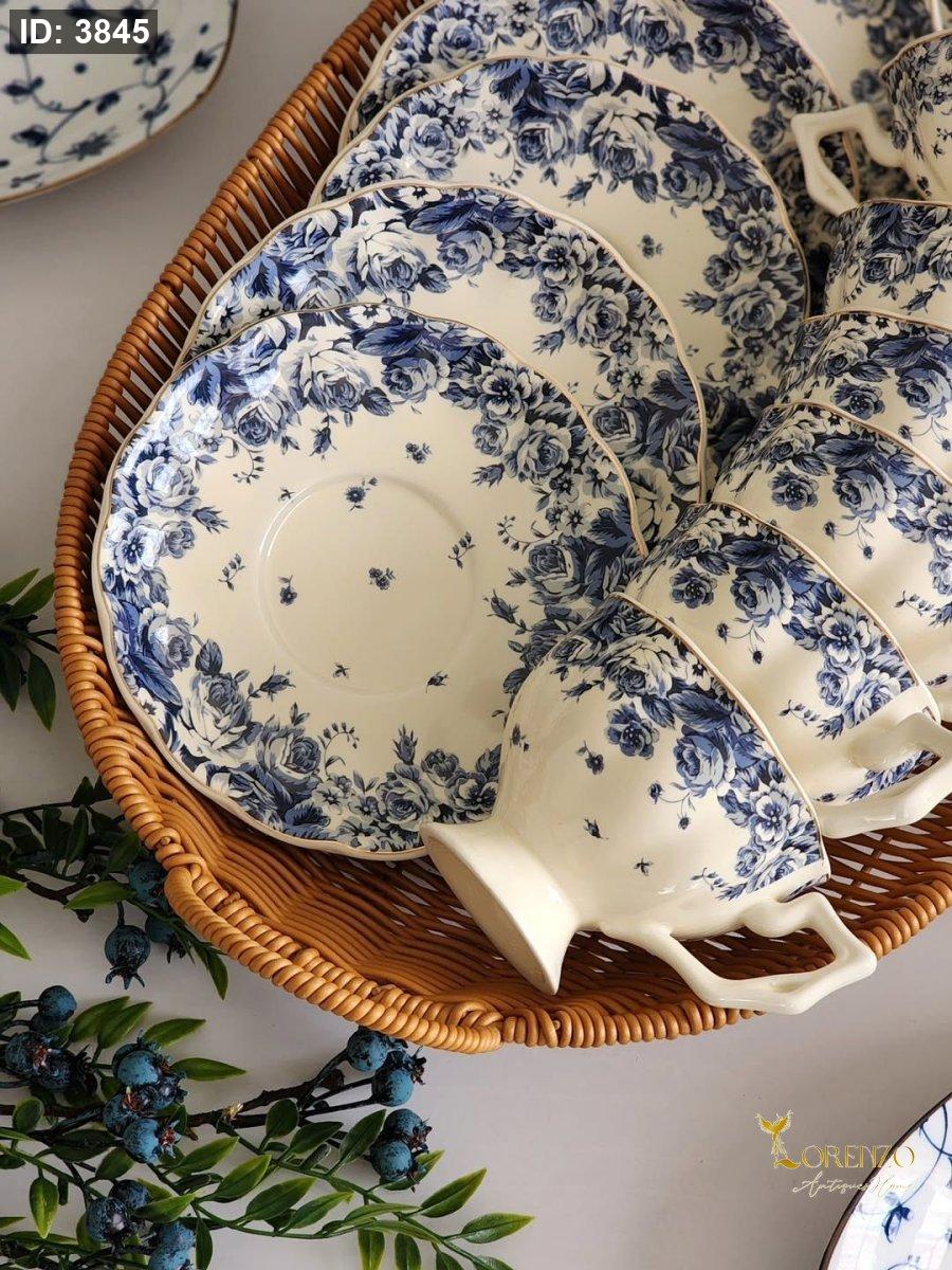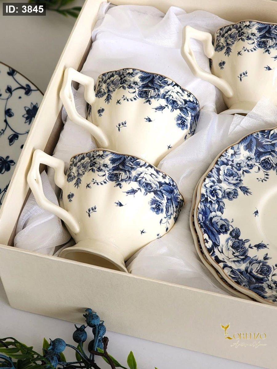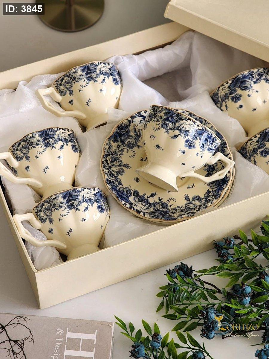 استمتعي بتجربة قهوة أنيقة مع هذا الطقم المميز من فناجين القهوة المصممة بذوق راقٍ ولمسة كلاسيكية جذابة. يأتي الطقم مكوّن من 6 فناجين متناسقة، مزينة بنقشة زهور زرقاء أنيقة تضيف لمسة فخامة لأي جلسة.