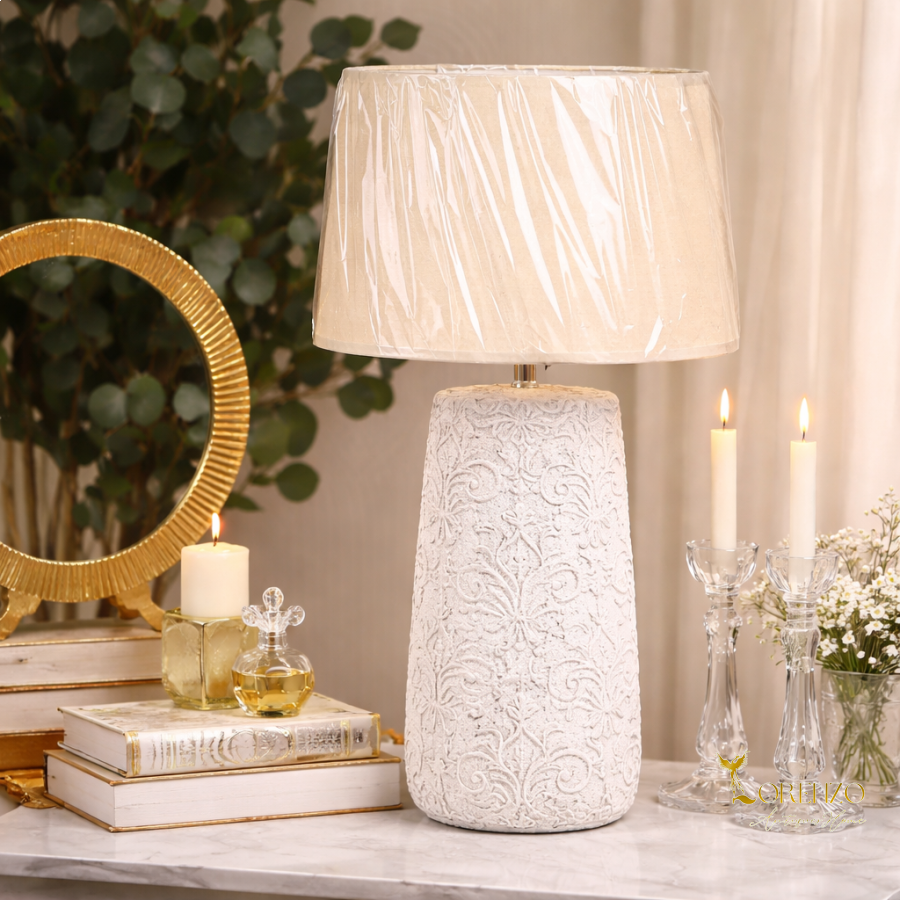 أباجورة ديكور فاخرة بتصميم أنيق يجمع بين الكلاسيكية واللمسة العصرية، لتكون قطعة مميزة تضيف دفء وجمال لأي زاوية في المنزل. تتميز بقاعدة مزخرفة بنقوش بارزة مستوحاة من الطراز الأوروبي، مع لون أبيض راقٍ ينسجم بسهولة مع مختلف أنماط الديكور.