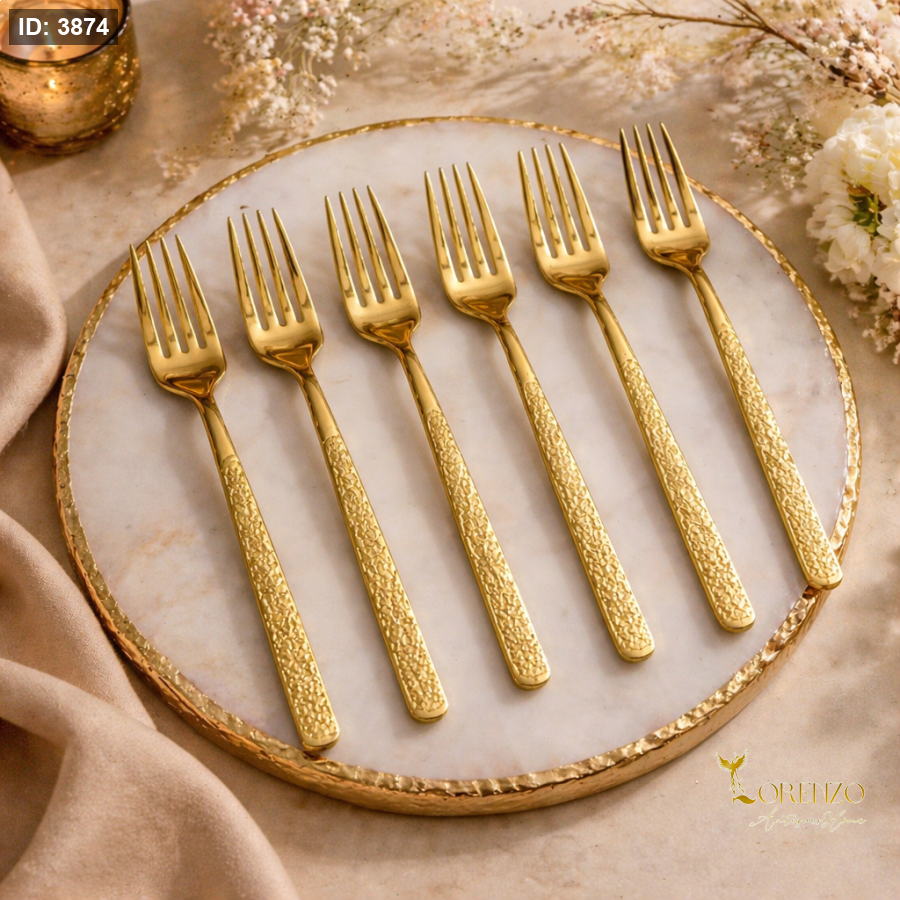 طقم 6 شوك طعام فاخر بتصميم أنيق ولون ذهبي لامع كبير