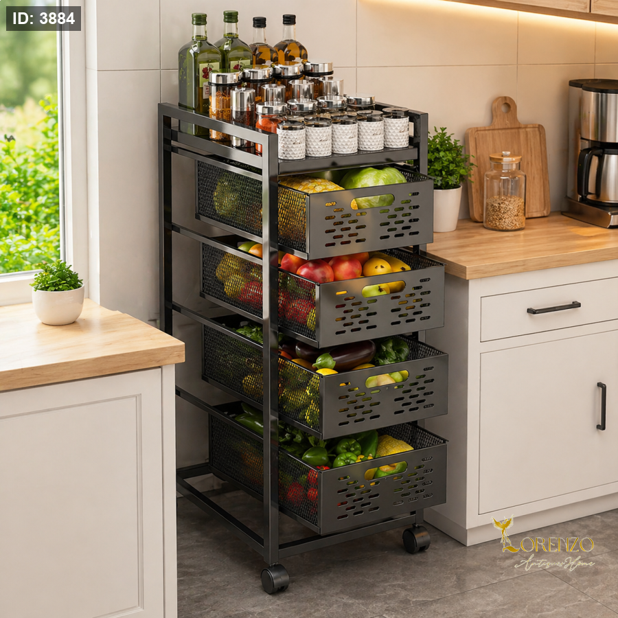 5 طبقات واسعة: توفر مساحة كبيرة لتخزين الخضار، الفواكه، البهارات، أو حتى أدوات المطبخ.