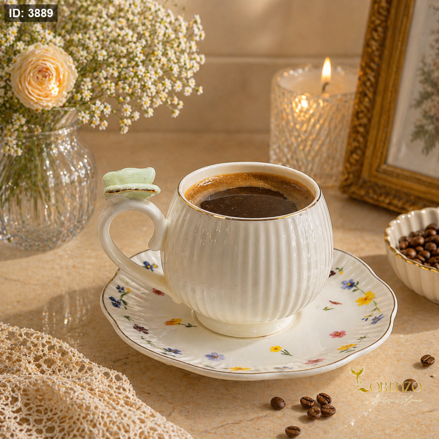 طقم فناجين قهوة 6 قطع مع صحون – فخامة ناعمة بتفاصيل راقية ☕🌸