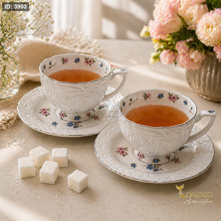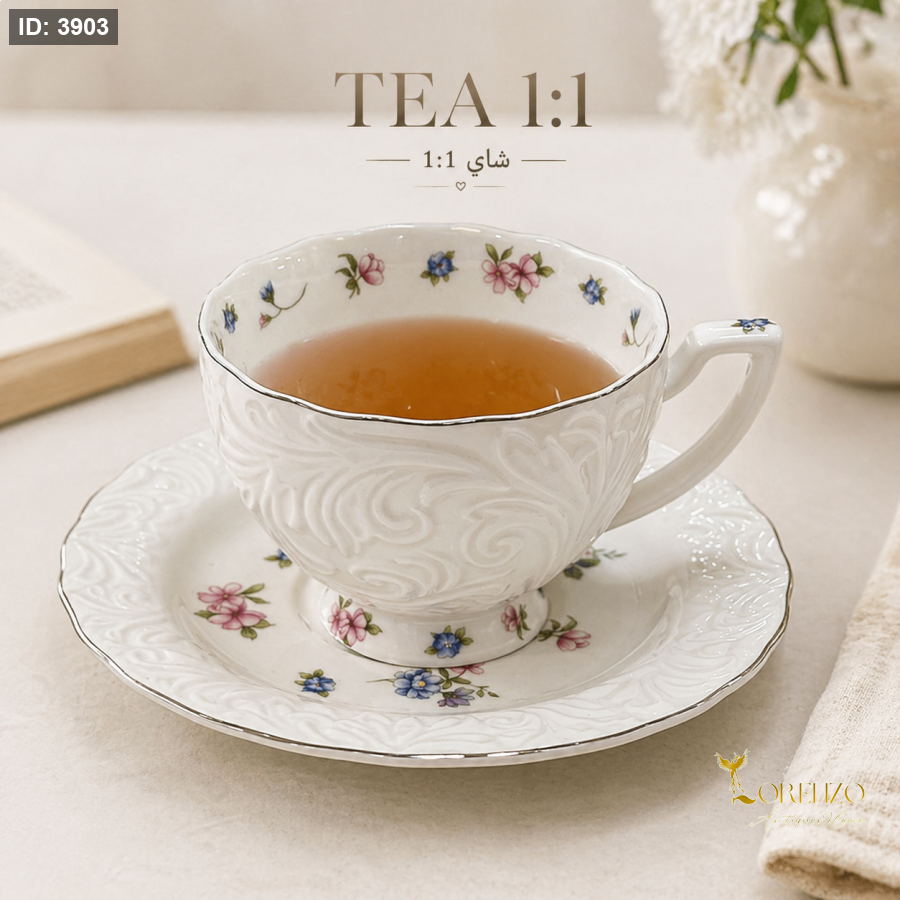 استمتعي بلحظات شاي هادئة وأنيقة مع طقم فناجين الشاي المصمم بأسلوب كلاسيكي راقٍ. يتميز الفنجان بنقشة ورود ناعمة وتفاصيل بارزة تضيف لمسة فخامة على مائدتك، مع لون أبيض هادئ يتناسق بسهولة مع مختلف الديكورات. يأتي الطقم مع صحون متطابقة تعزز من جمال التقديم، ليكون خيارًا مثاليًا للضيافة اليومية والمناسبات.