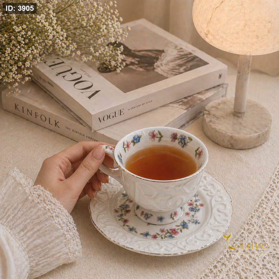 استمتع بلحظات الشاي اليومية بأناقة راقية مع طقم فناجين الشاي المصمم بذوق كلاسيكي ناعم ولمسات زهرية رقيقة تضيف إحساسًا بالهدوء والفخامة إلى طاولتك. يأتي الطقم مكوّنًا من 6 فناجين مع صحون متناسقة، مثالية لتقديم الشاي للضيوف أو للاستخدام اليومي بأسلوب أنيق.
