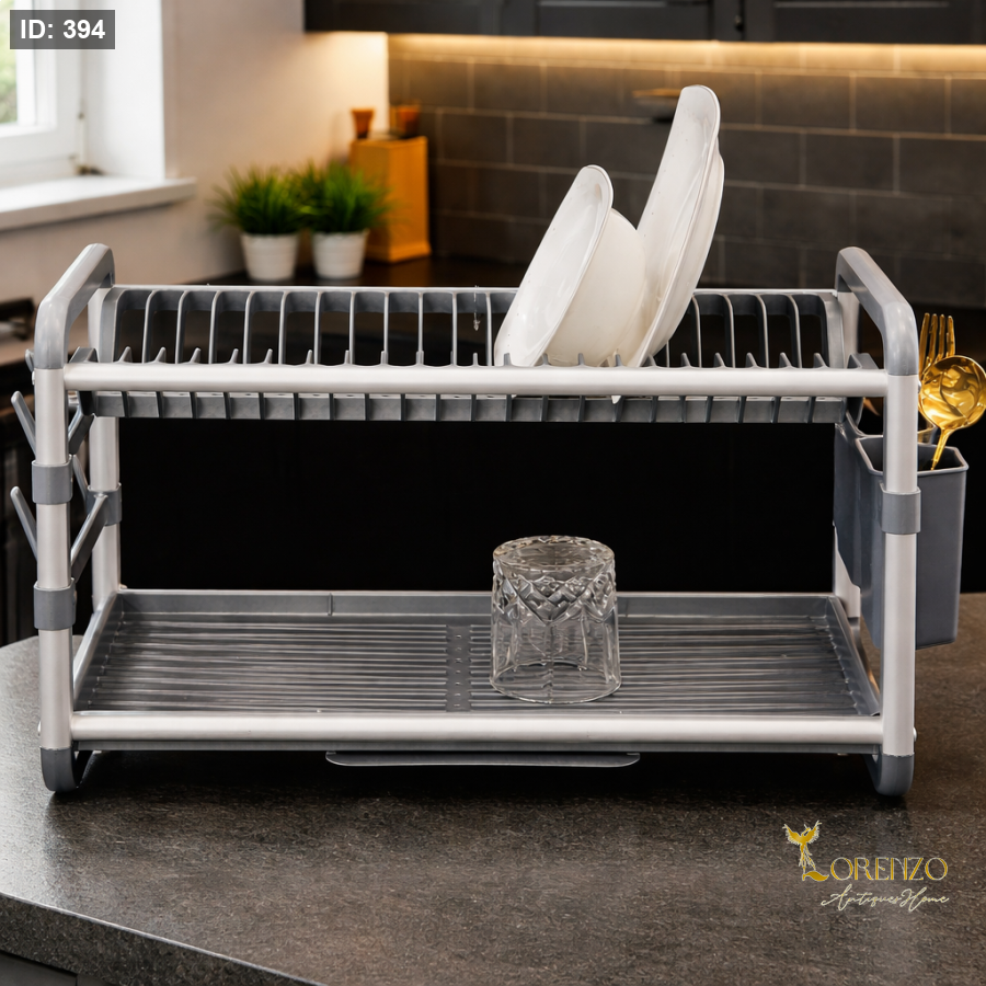 منشفة صحون بطبقتين بتصميم عملي وعصري، مثالية لتنظيم وتجفيف الأطباق بشكل أنيق داخل مطبخك. تأتي بهيكل متين باللون الأبيض مع تفاصيل رمادية، يمنحها مظهراً نظيفاً يليق بالمطابخ الحديثة.