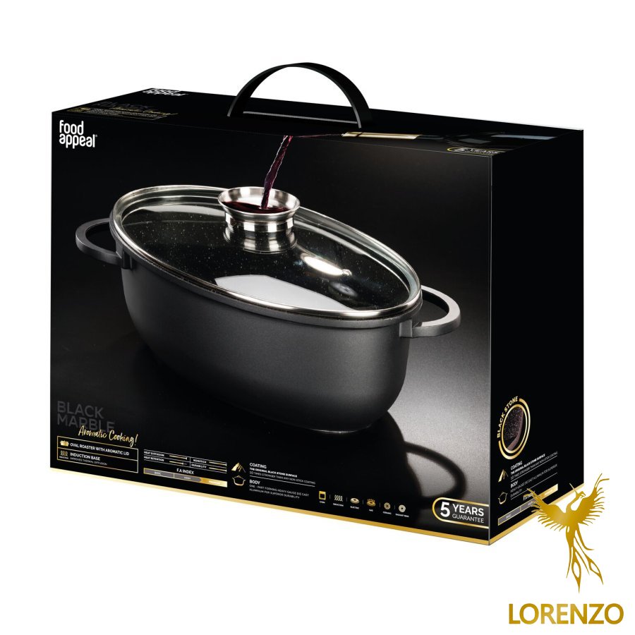 يتم تصنيع أواني الطهي من سلسلة الرخام الأسود باستخدام تقنية صب الألومنيوم الجديدة التي توحد جسم الوعاء والسطح الخارجي في وحدة واحدة قوية ومتينة للغاية. يتم إنتاج الأدوات بسماكات مختلفة، وقاعدة سميكة وحواف ضيقة، لسهولة الاستخدام وتحقيق أقصى قدر من الفعالية. السطح الداخلي مصنوع من الرخام الأسود ذو خصائص ممتازة غير قابلة للالتصاق. قاعدة سميكة بقاعدة حث احترافية تعمل على تحسين فعالية تشتيت الحرارة