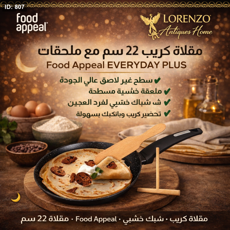 مقلاة كريب، مقلاة بانكيك، Food Appeal، مقلاة غير لاصقة، مقلاة 22 سم، مقلاة كريب مع ملحقات، أدوات مطبخ، مقلاة فطور، كريب بان، EVERYDAY PLUS، Lorenzo Antiques Home، مقلاة مطبخ عملي