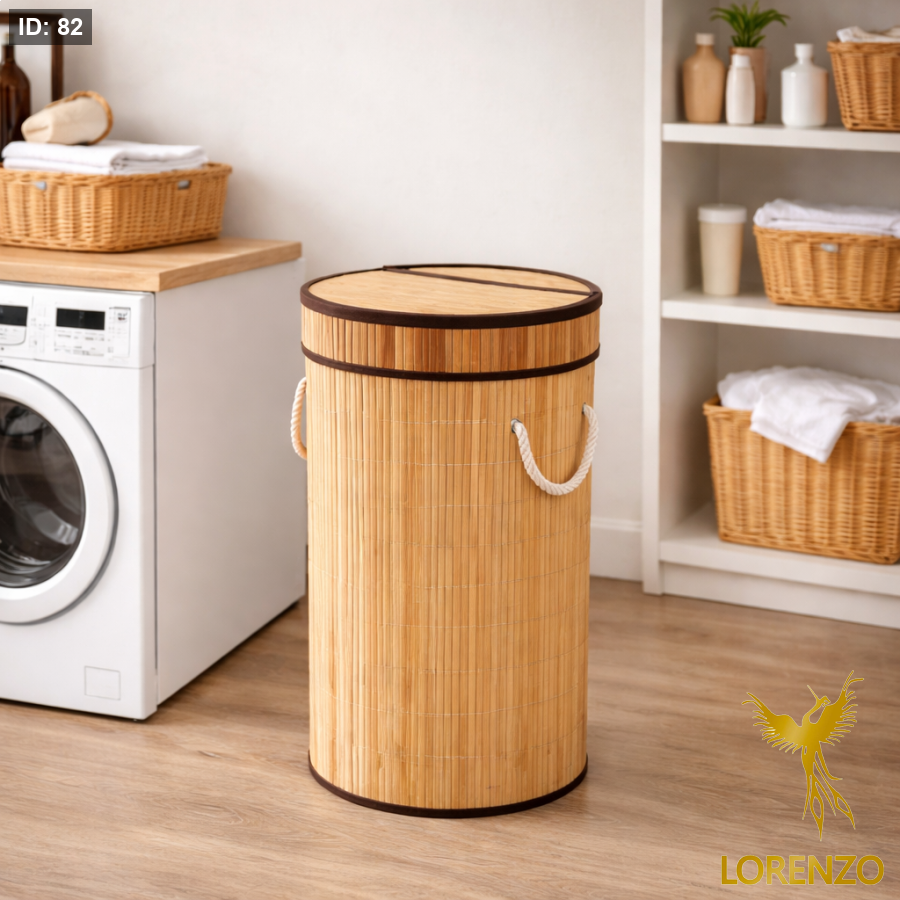 سلة غسيل من الخيزران بغطاء – تصميم طبيعي أنيق