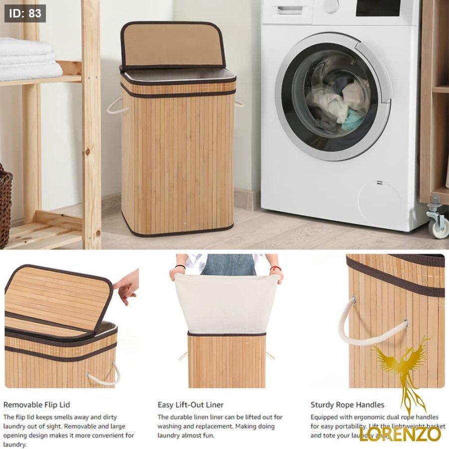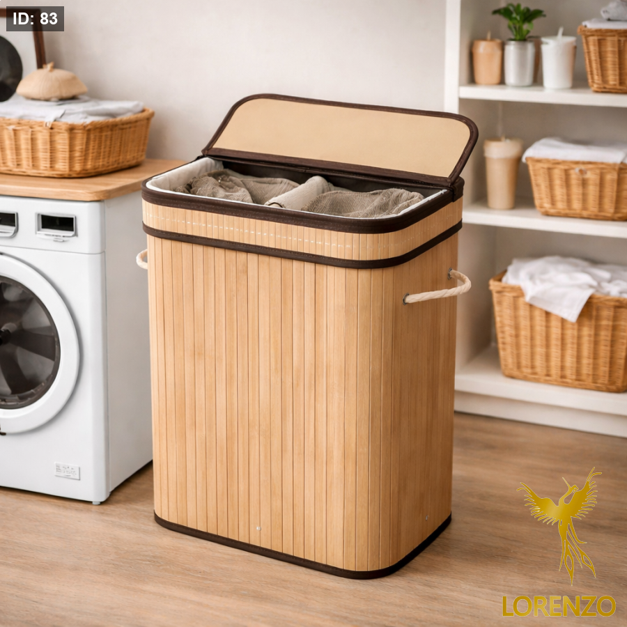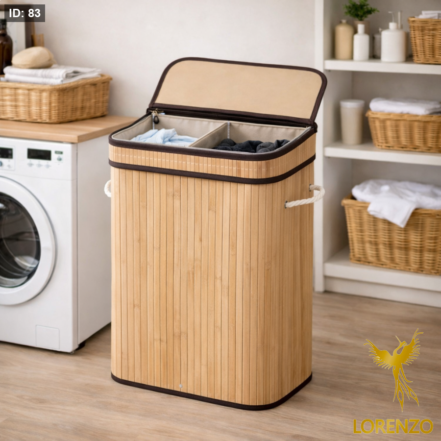 سلة غسيل عملية وأنيقة مصنوعة من البامبو الطبيعي (الخيزران) بلمسة ديكور دافئة تناسب غرف الغسيل، الحمام أو غرفة النوم. تتميز بتقسيم داخلي ذكي إلى قسمين لفرز الملابس بسهولة، مع غطاء علوي مزوّد بسحاب للحفاظ على الخصوصية والنظافة.