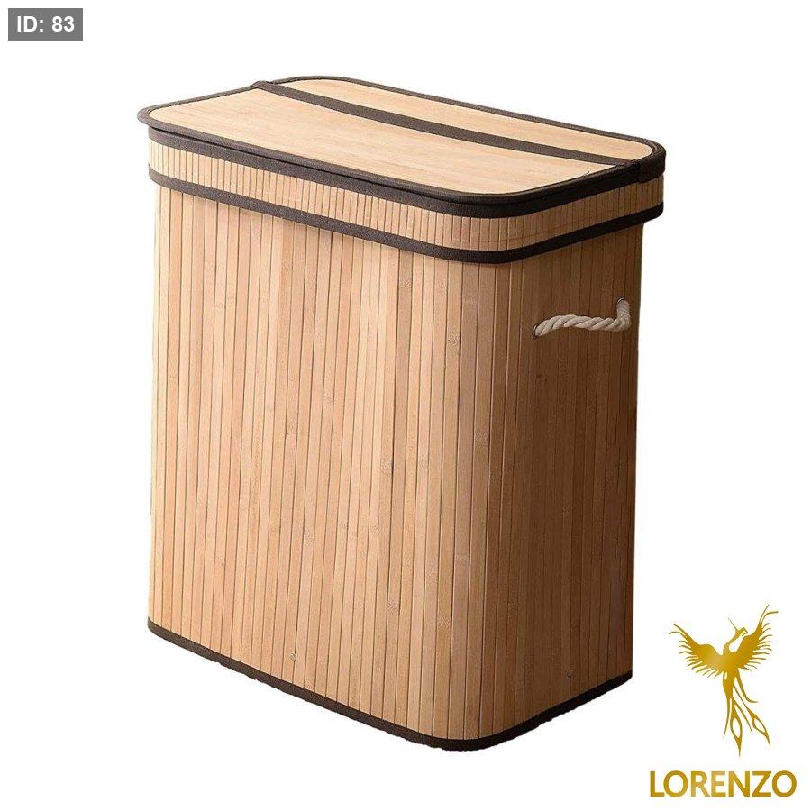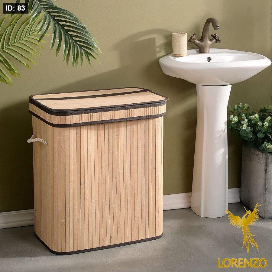 سلة غسيل مستطيلة من البامبو (خيزران) – مقسّمة من الداخل مع سحاب